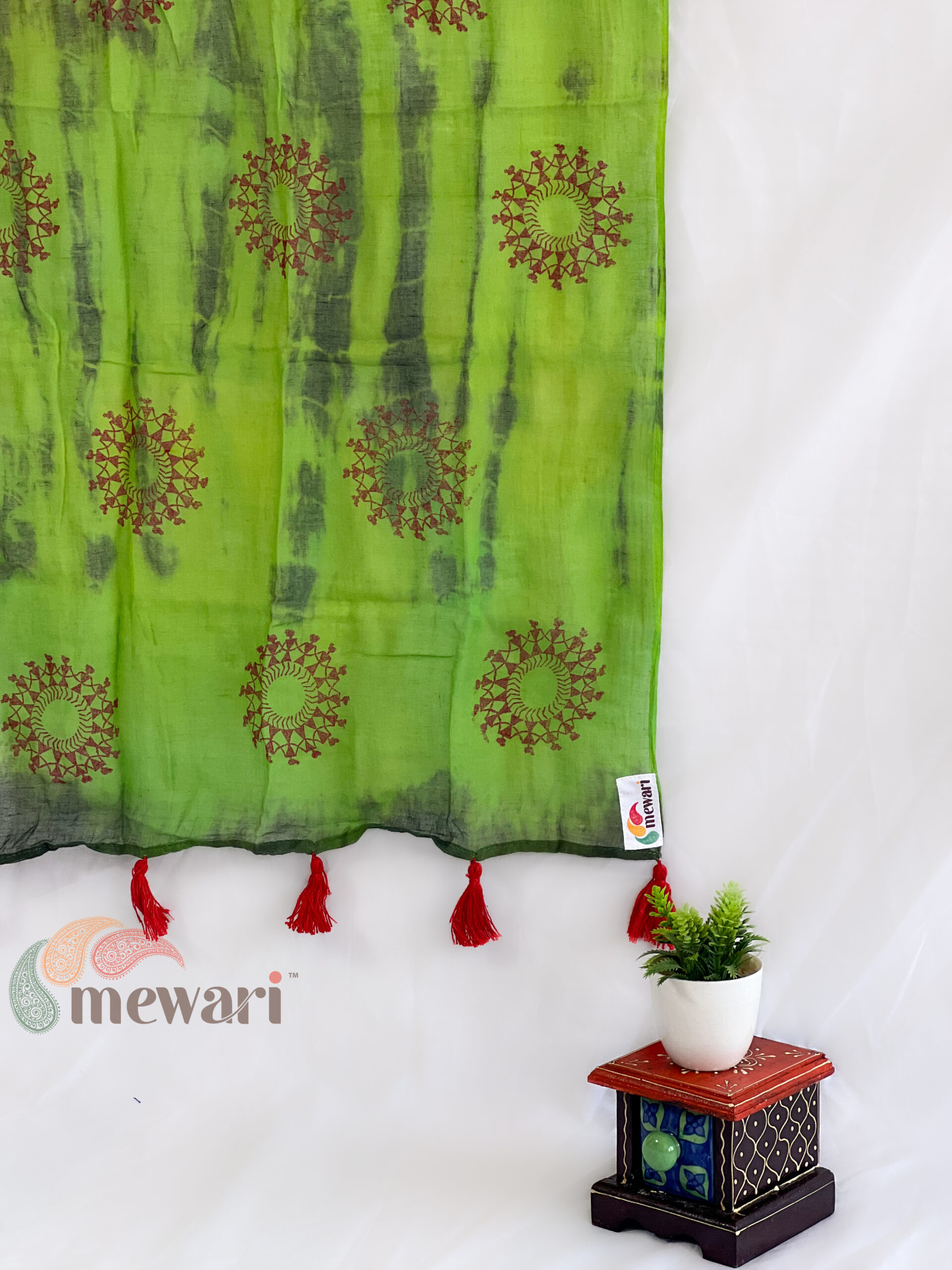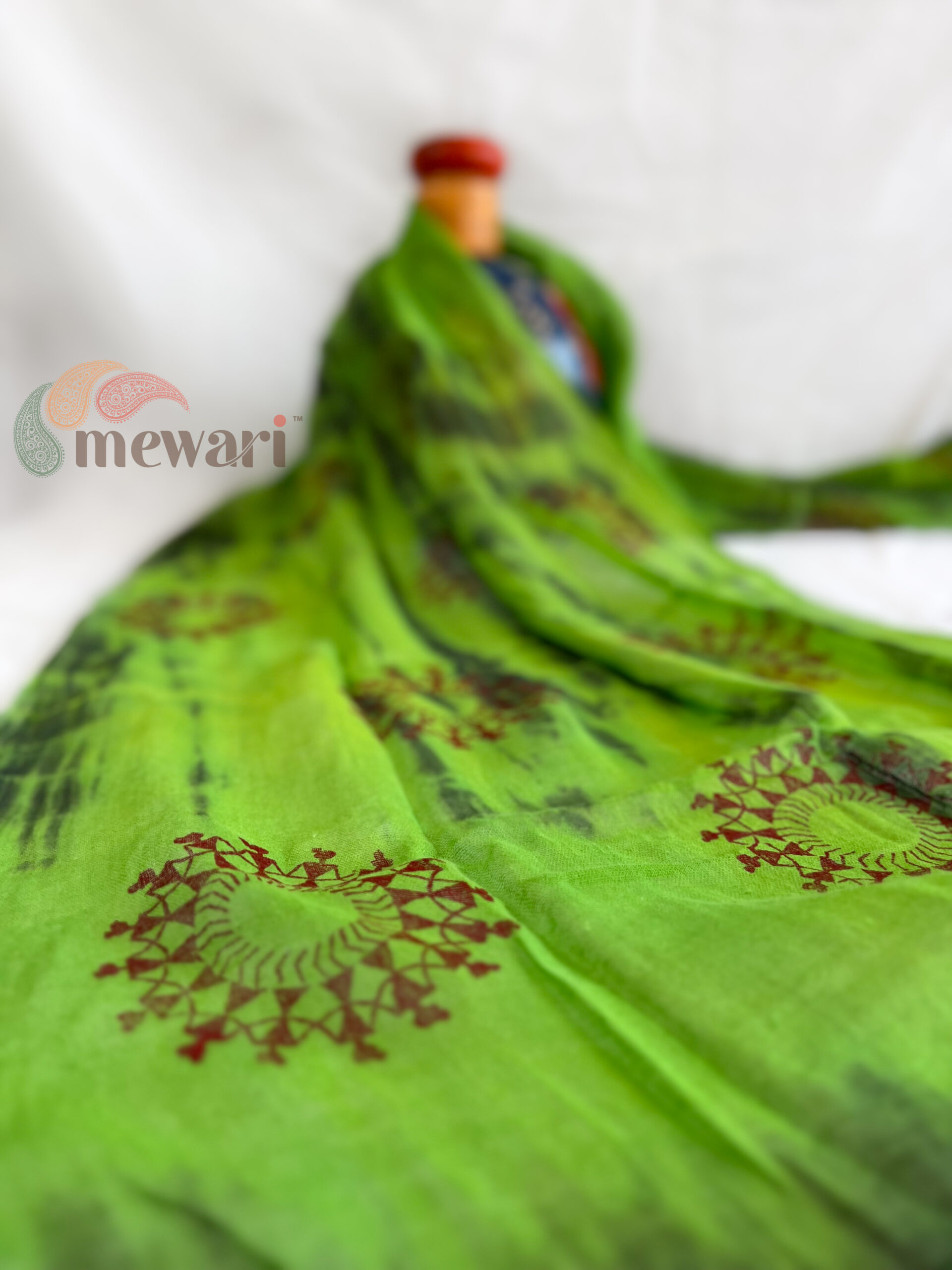 Design: Green base with Warli dance motifs