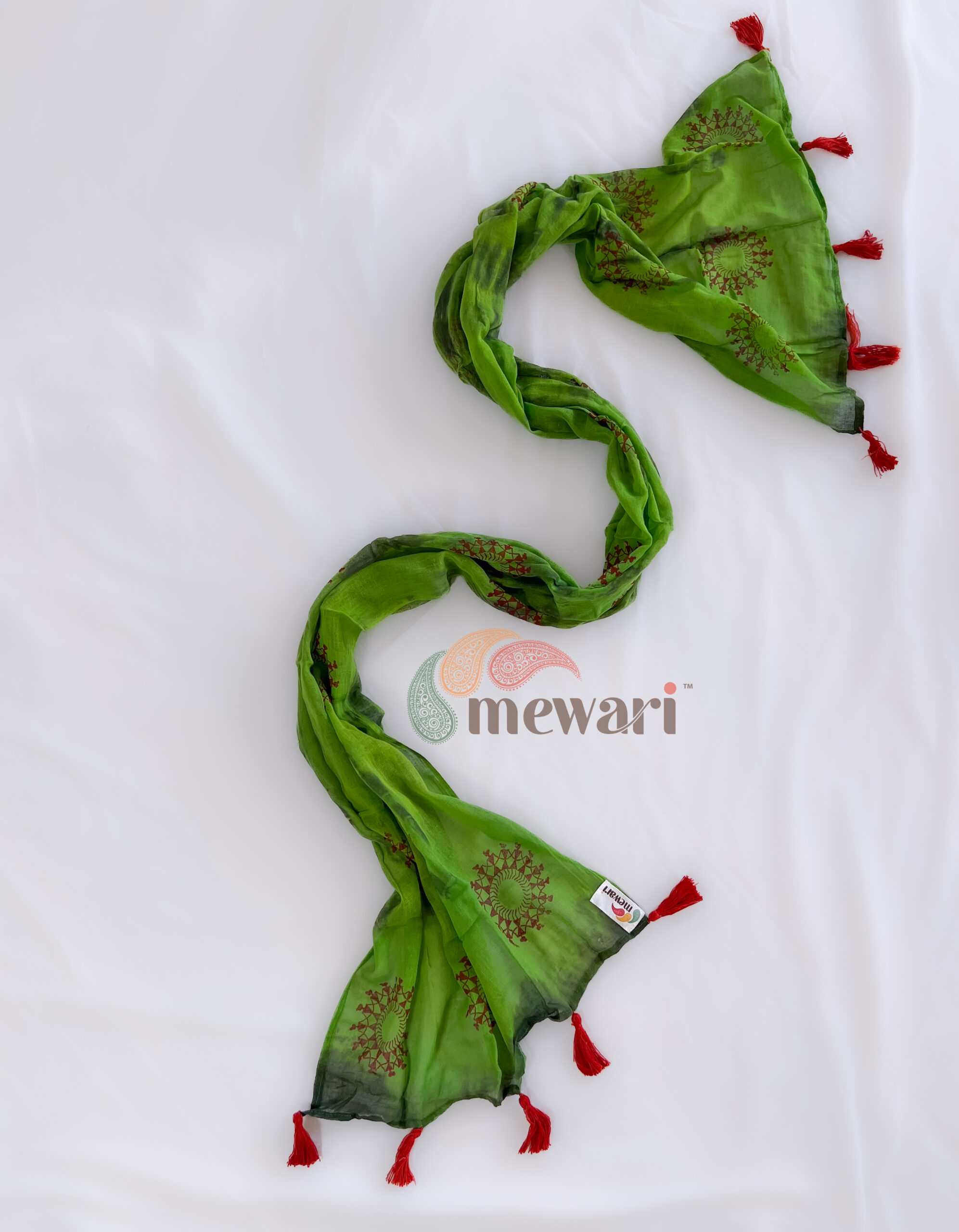 Celebrate the vibrant spirit of the forest with the Forest Dance Warli Stole, featuring lively Warli motifs that capture the joy of tribal dance and community life. The rich green base symbolizes growth and harmony, while fine tassels lend it a graceful finish.